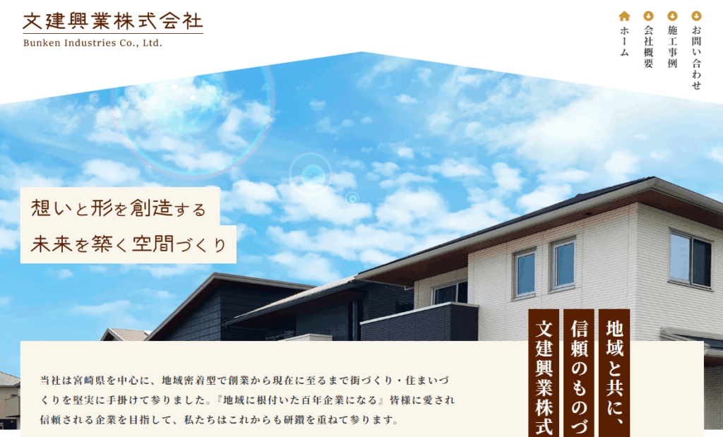 当社は宮崎県を中心に、地域密着型で創業から現在に至るまで街づくり・住まいづくりを堅実に手掛けて参りました。『地域に根付いた百年企業になる』皆様に愛され信頼される企業を目指して、私たちはこれからも研鑽を重ねて参ります。