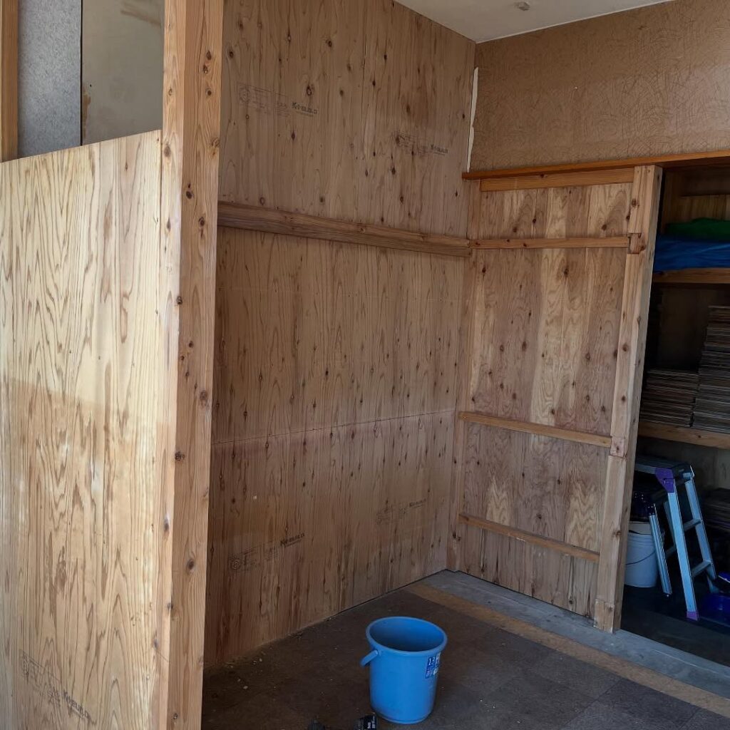 この度、甲勢工業株式会社 社長様のご依頼を頂き、倉庫として使われてた部分を事務所応接室として改修させて頂きました。シャッターの内側に両開きドア、外壁施工。室内は、壁、棚撤去+新たな間仕切り‼︎クロスも渋いクロスにタイルカーペット+CFシート施工。柱は残し、ダウンライトの灯りで色味を味わえ大きいソファーでゆったり出来る空間に仕上げさせて頂きました‼︎社長、奥様にも喜んで頂き、また、素晴らしく楽しいお仕事をさせて頂きありがとうございました🙇🏻♂️いつでも追加工事お受けいたします‼︎ この投稿をInstagramで見る 文建興業株式会社(@bunkenkougyou.kk)がシェアした投稿